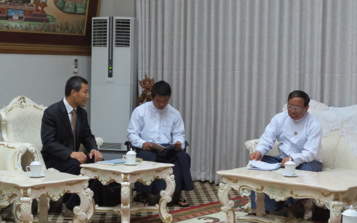 5月3號早上十點,緬甸礦業部部長敏昂博士在部長會客廳熱情接見了開元集團駐緬甸辦事處代表。與會的還有緬甸礦業部副部長吳丹通昂、緬甸礦業局局長吳文騰、緬甸地質研究與礦業勘探局局長耶敏綏博士、礦業部第一礦業公司局長吳覺叁、礦業部第三礦業公司局長吳特昂及秘書等。