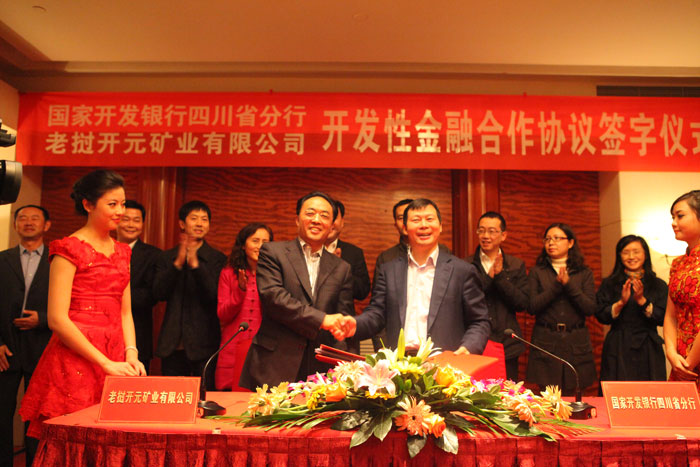 2012年11月14日下午,亞洲鉀肥集團(tuán)有限公司所屬的老撾開(kāi)元礦業(yè)有限公司(簡(jiǎn)稱老撾開(kāi)元)與國(guó)家開(kāi)發(fā)銀行四川省分行在凱賓斯基飯店舉行開(kāi)發(fā)性金融合作協(xié)議簽字儀式。國(guó)家開(kāi)發(fā)銀行四川省分行黨委書(shū)記、行長(zhǎng)王中,副行長(zhǎng)彭忠,集團(tuán)董事長(zhǎng)、老撾開(kāi)元董事長(zhǎng)趙思儉、副總裁余曉波等領(lǐng)導(dǎo)代表出席了簽字儀式。