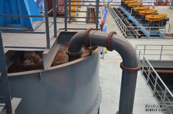 金秋十月,是收獲的季節。10月20日,老撾開元礦業有限公司一期50萬噸氯化鉀項目投料試車儀式在老撾開元公司隆重舉行。公司員工代表、施工安裝單位代表、公司各級領導齊聚一堂。四川開元集團董事長、總裁、老撾開元公司董事長趙思儉先生宣布:“老撾開元礦業有限公司一期年產50萬噸氯化鉀項目投料試車現在開始!”現場頓時掌聲雷動、鞭炮齊鳴,隨著趙思儉董事長和何永平總經理手中的紅繡球稠帶徐徐拉下,裝滿鉀石鹽原礦的裝載機向投料槽投入第一車原礦。鉀石鹽礦隨著皮帶走廊流向破碎車間,經一次破碎后被送入磨礦廠房,經篩分、攪拌、研磨,磨好的礦液隨著自動化裝置進入選礦車間。經過一系列選礦工藝,最后變成氯化鉀產品出現在人們面前。經化驗分析,產品質量合格,含量達97%以上。這充分證明,老撾開元礦業有限公司氯化鉀加工設備選型得當,選礦工藝成熟,產成品質量符合設計要求。