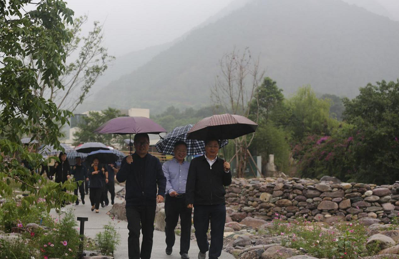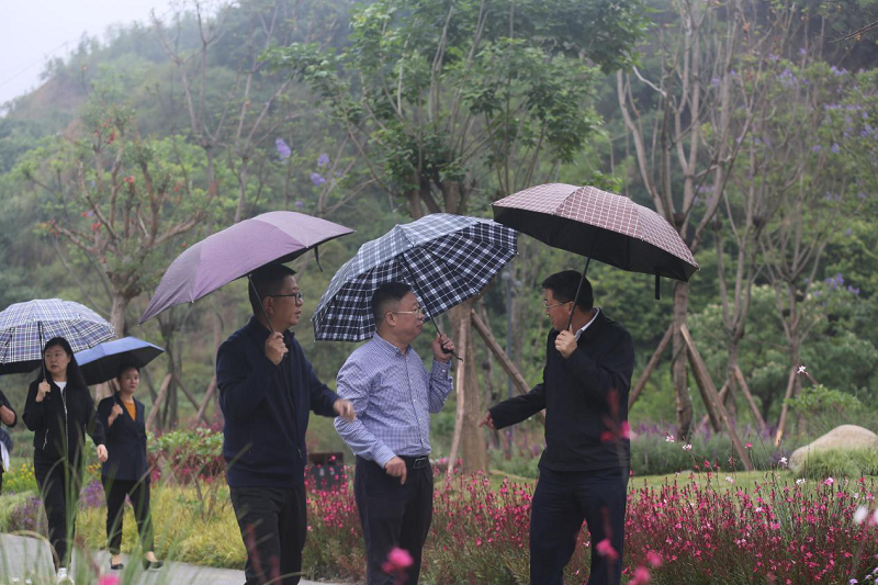 李總首先陪同考察團參觀溪地公園,并具體介紹了溪流景觀、花卉園林景觀的設計理念和實景打造情況。環書記對公園呈現的自然風貌和美麗風景給予了高度評價。
