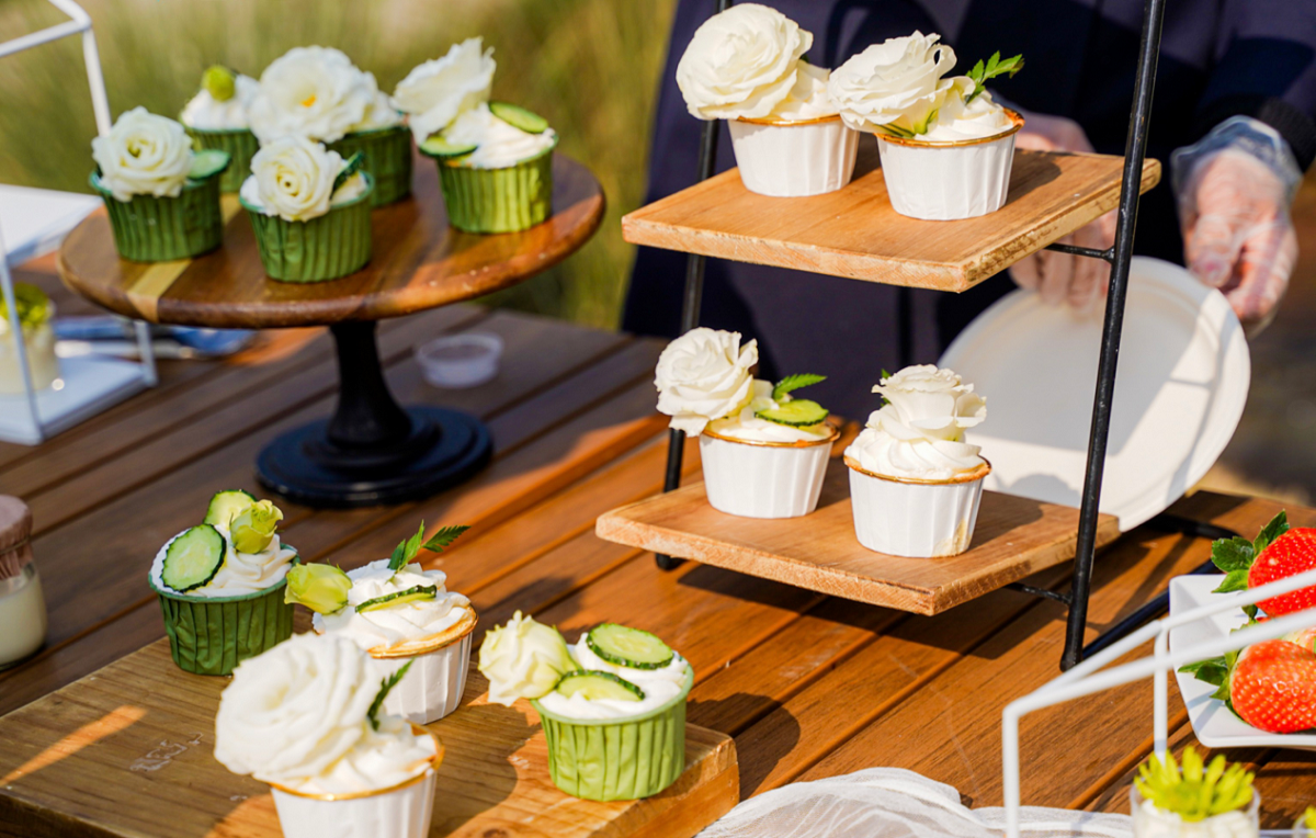 至澗茶臺露營區暫憩,嘉賓們圍坐陽光下,湛藍天幕為穹頂,柔軟草甸為絨毯,陽光傳遞溫暖,風中飄來淡淡花香,美味茶歇點亮舌尖,愜意瞭望山間時光。