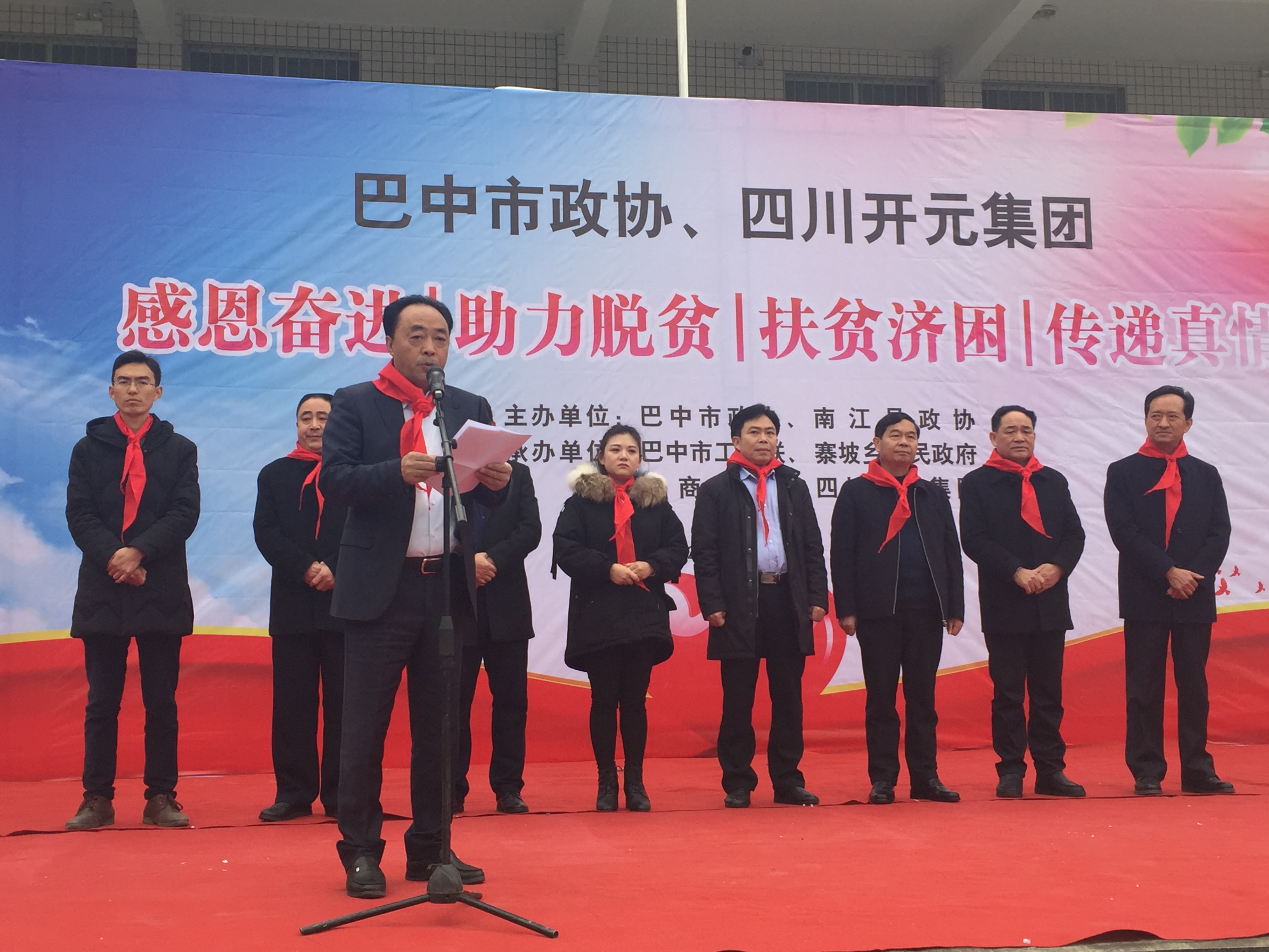 2月22日,在巴中市政協(xié)“創(chuàng)引幫”活動的感召下,由市政協(xié)、四川開元集團主辦,市工商聯(lián)、南江縣委縣政府,南江縣政協(xié)、寨坡鄉(xiāng)黨委政府、巴商總會和四川南江光霧和谷旅游開發(fā)公司協(xié)辦的寨坡鄉(xiāng)助學(xué)、助老、助殘活動在寨坡小學(xué)隆重召開。